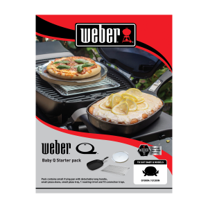 Explore a range of cooking possibilities with this starter pack for your Baby Q barbecue. Whether you’re frying eggs and pancakes for breakfast, baking a brownie for morning tea, cooking up a pizza for lunch or roasting a chicken for dinner, this starter pack has all you need. This pack features a roasting trivet and 10 convection trays, a pizza stone with pizza tray and a frying pan with detachable handle – all specially designed and tested for use in your Baby Q gas BBQ.